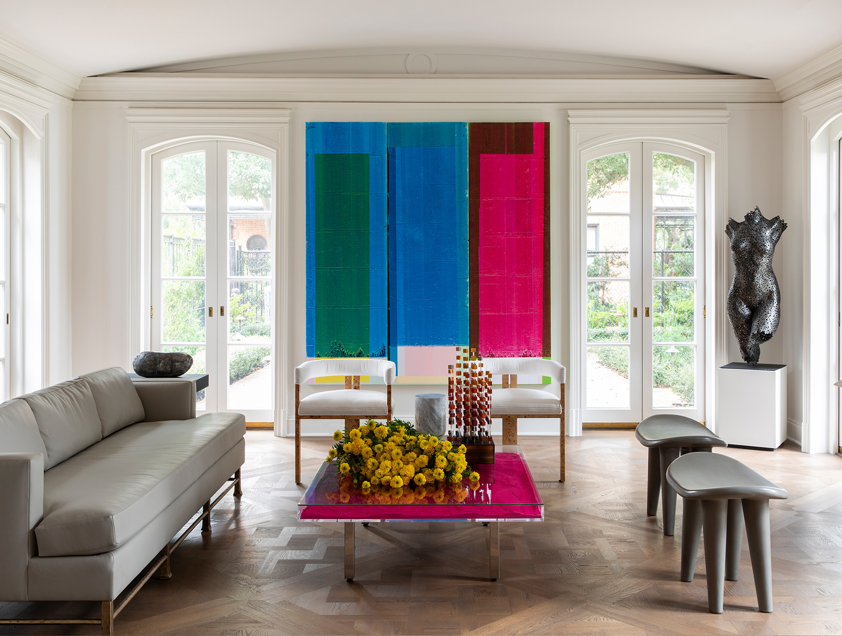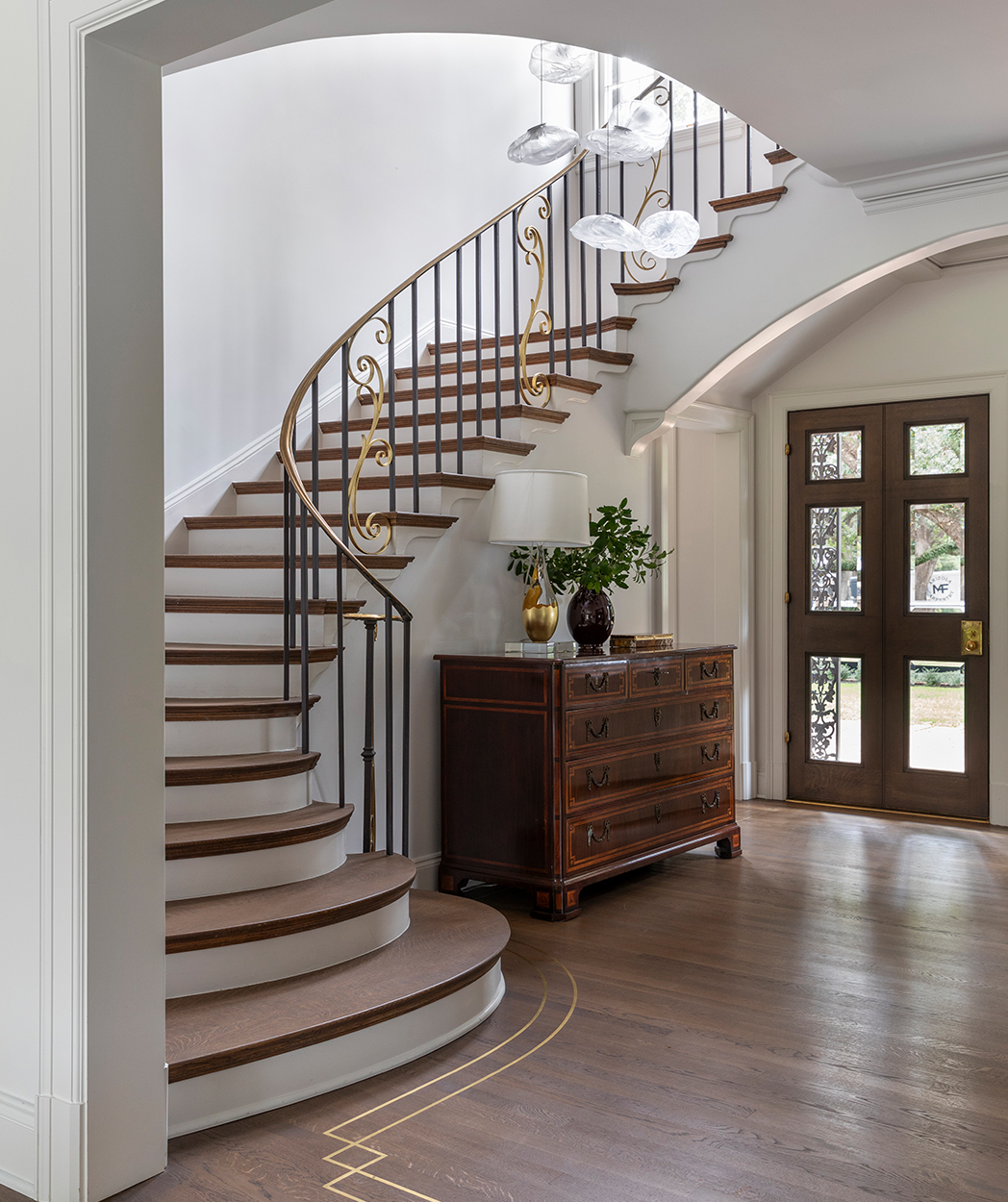 A historic 1920s residence in Houston’s Broadacres neighborhood, this renovation honors traditional architecture while embracing a distinctly modern point of view. Designed for philanthropic empty nesters with a deep appreciation for art, the home balances formality with bold, expressive moments. We partnered with Weingarten Art Group—providing spatial concepts and room schemes to inform their sourcing of a globally curated collection. Handmade brass cabinet fronts in the kitchen and brass inlay detailing in the foyer offer a sense of quiet luxury. The result is timeless yet personal, rich in both history and perspective.