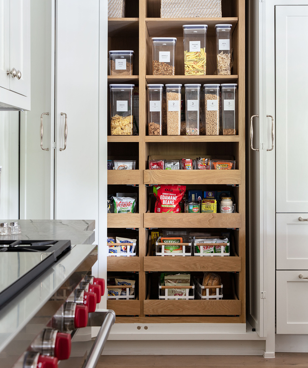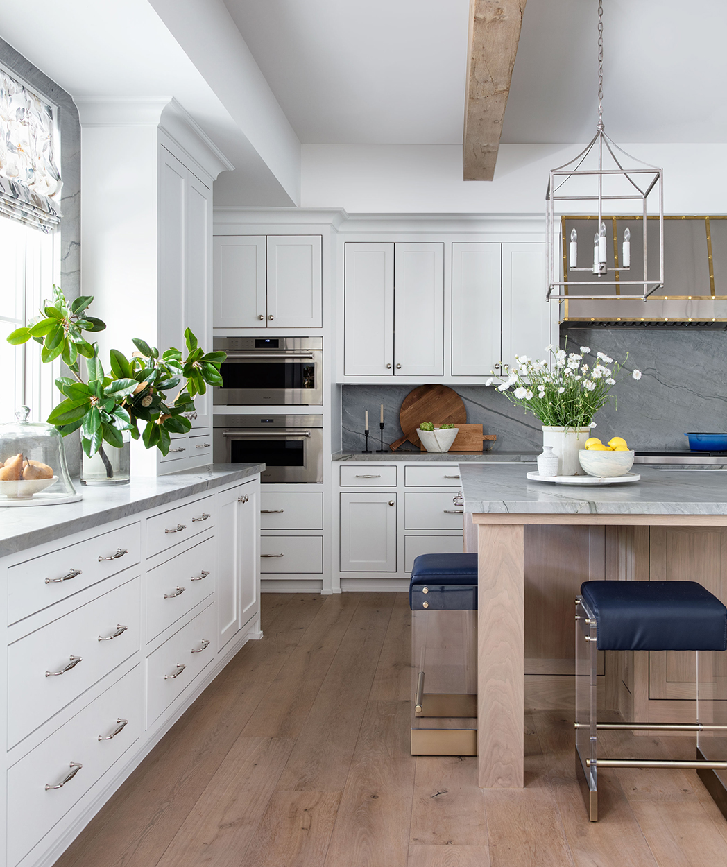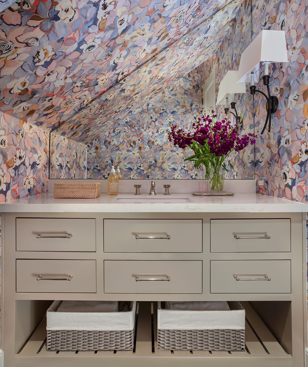 A classic remodel in Piney Point Village, this project honors the traditional architecture of the home while giving it a fresh, updated twist. Designed for a lively household with four kids and a whole pack of beloved pets, the spaces balance polish with practicality. Throughout the home, soft blues, rich greens, and warm woods bring cohesion, while playful touches—like the colorful wall coverings—add charm and surprise. From the pull-out pantry to the moody bar tucked behind antique doors, every detail was considered to support the rhythms of their real family life.