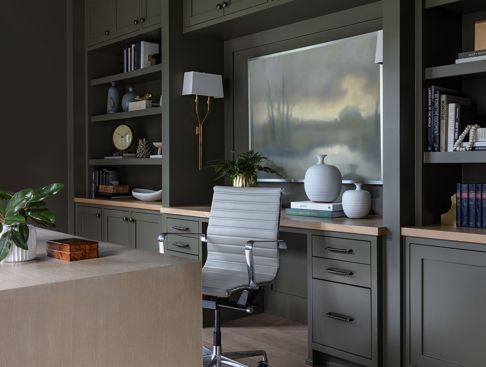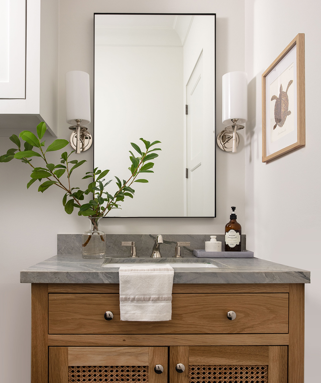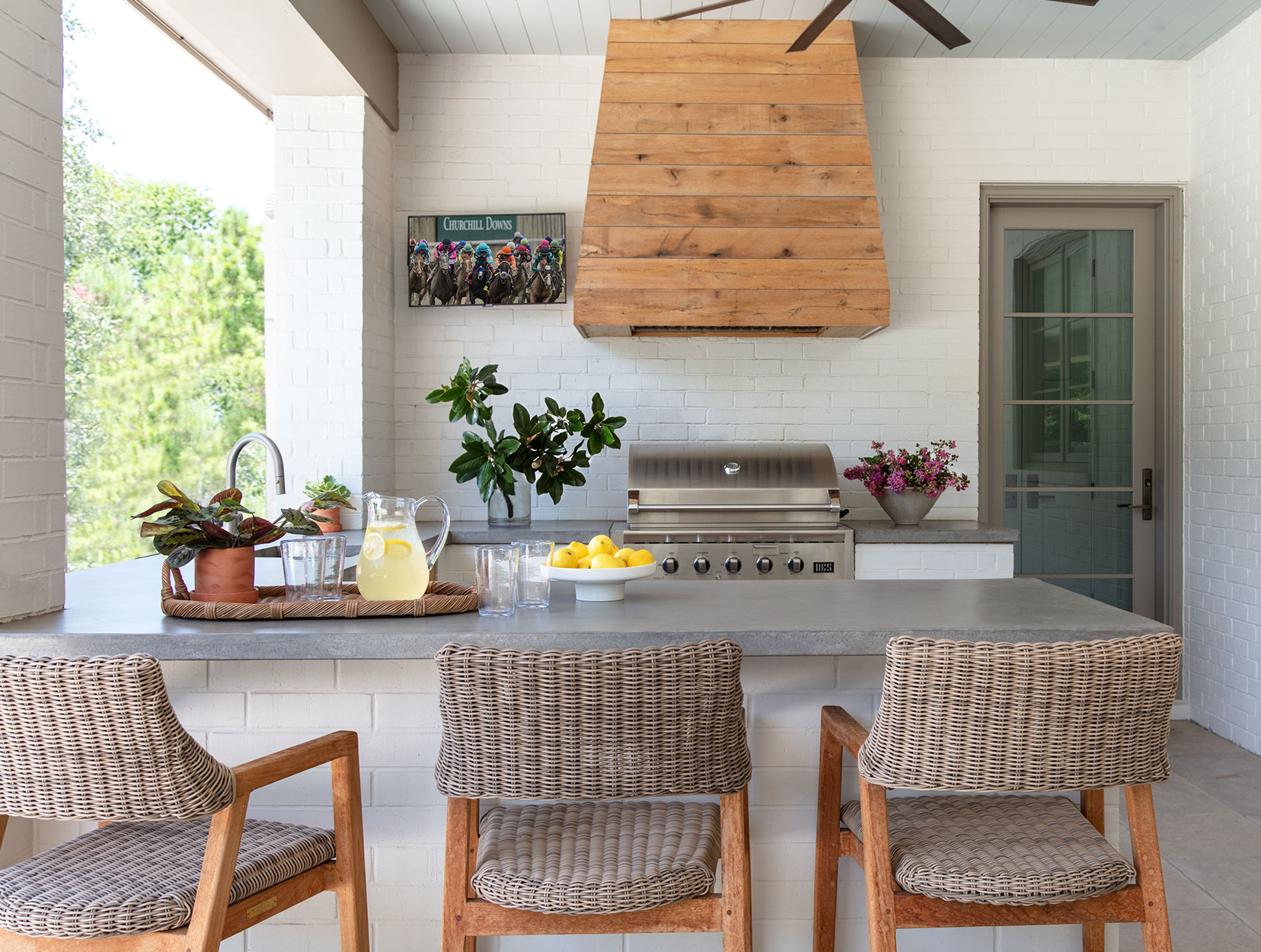 A classic remodel in Piney Point Village, this project honors the traditional architecture of the home while giving it a fresh, updated twist. Designed for a lively household with four kids and a whole pack of beloved pets, the spaces balance polish with practicality. Throughout the home, soft blues, rich greens, and warm woods bring cohesion, while playful touches—like the colorful wall coverings—add charm and surprise. From the pull-out pantry to the moody bar tucked behind antique doors, every detail was considered to support the rhythms of their real family life.