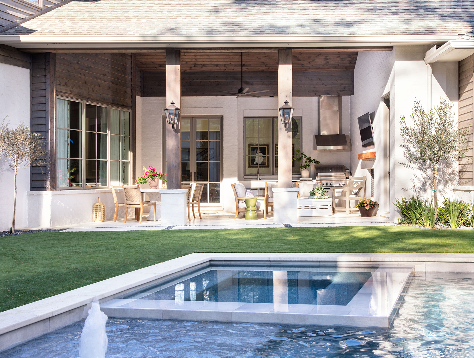 Tucked into Hunters Creek Village, this new construction home offers a warm, welcoming take on transitional design. With three young daughters in tow, the clients wanted a space that balanced sophistication with softness. The result is refined but relaxed, filled with layered textures, subtle curves, and natural light. A reeded white oak island, paneled range wall, and custom pewter bar countertop, designed to gracefully patina over time, add depth and character that will only grow richer with age. Every space invites both gathering and retreat.